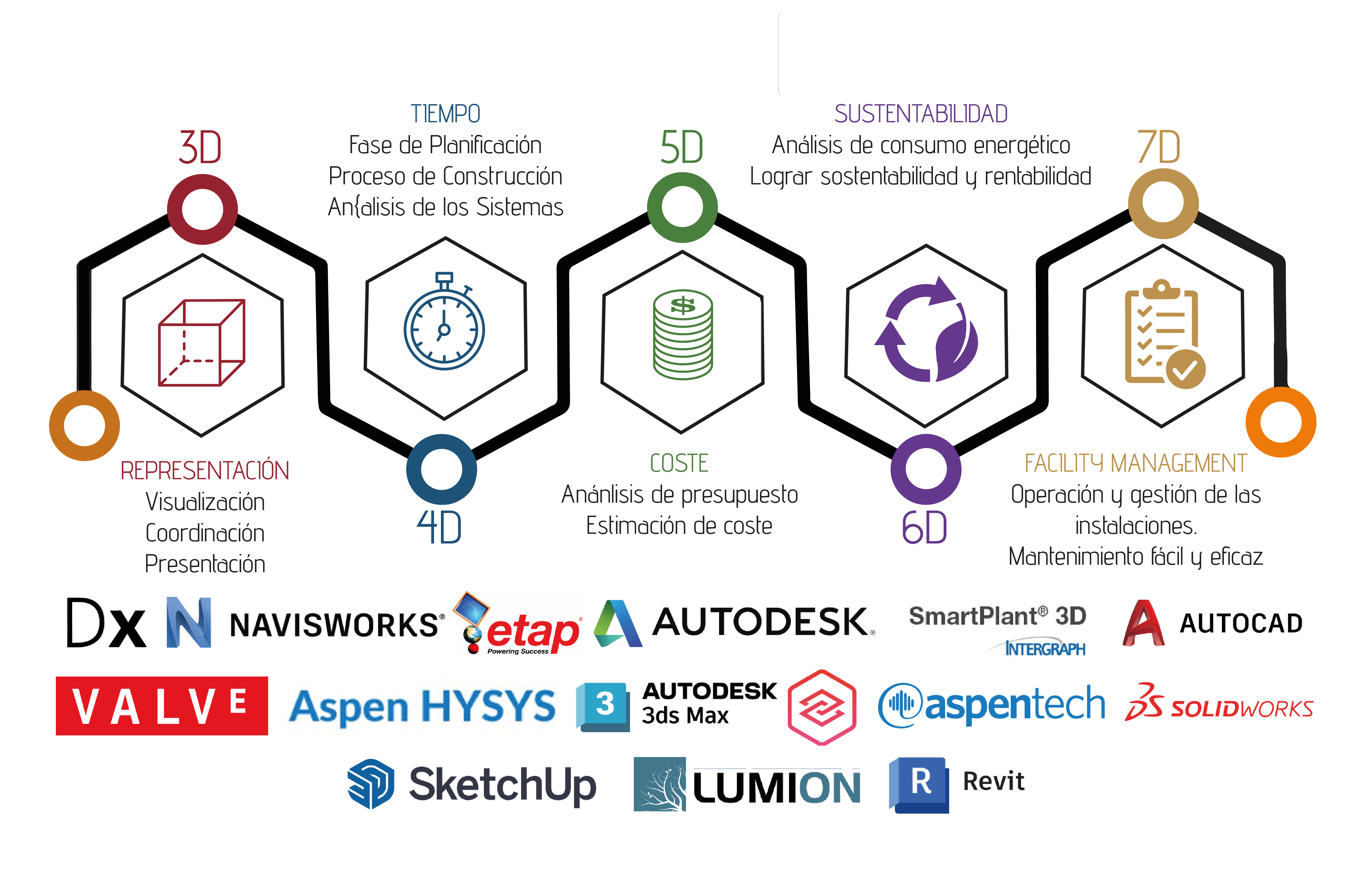 Contamos con un equipo altamente capacitado en modelado MEP (Mechanical, Electrical, Plumbing) y certificado en herramientas líderes como Autodesk BIM 360, Hexagon SmartPlant, DIALUX, ETAP, HYSIS, ASPEN ONE, UNISIM DESIGN, SOLIDWORKS, entre otras.